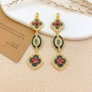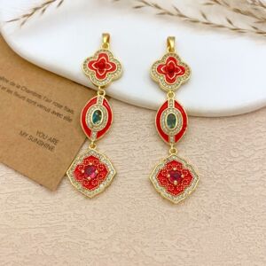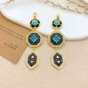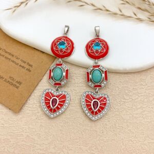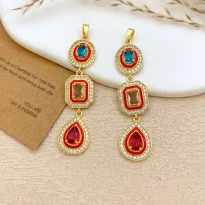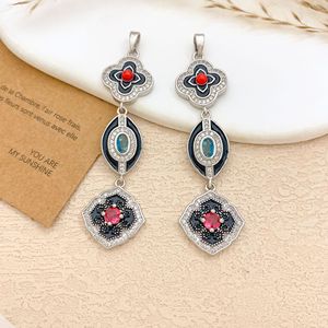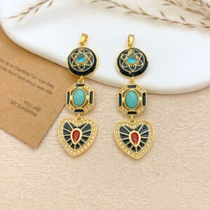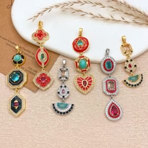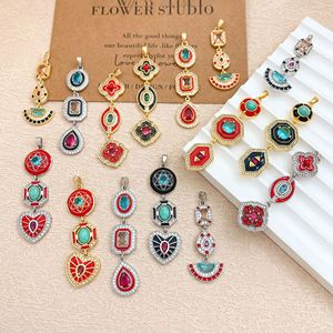 跨境时尚水滴形圆形diy配饰简约灵动长吊坠镶彩色锆石土耳其配饰