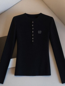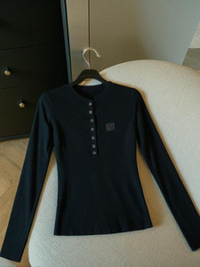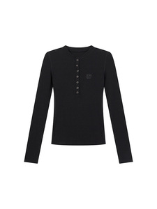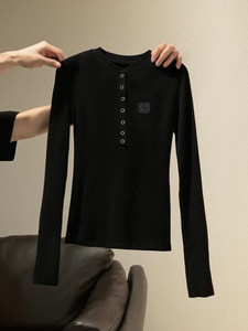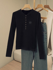 黑色纯欲低领打底衫长袖针织衫女秋辣妹纽扣修身显瘦内搭新款上衣
