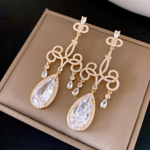 银针镶钻水滴流苏耳环轻奢高级感耳钉时尚精致夸张耳饰设计感小众
