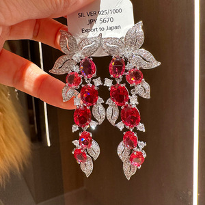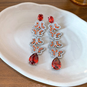 32#银针锆石花朵流苏耳钉(真金电镀)