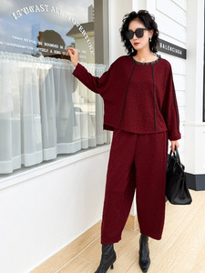 25秋大码轻奢复古提花上衣女宽松阔腿裤妈妈减龄洋气显瘦两件套装