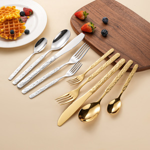 跨境430冰裂纹西餐具刀叉勺子套装 家用酒店西餐厅轻奢牛排刀叉勺