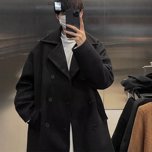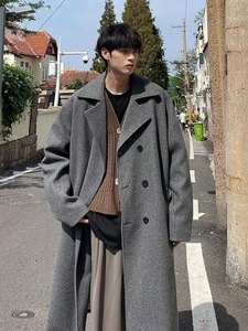 cleanfit深灰色毛呢大衣男款冬季高级感中长款风衣双排扣呢子外套