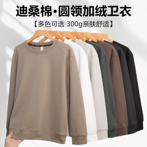 跨境300克重磅圆领卫衣男士秋冬迪桑棉加绒纯色长袖卫衣定制印花