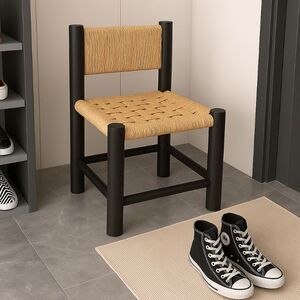 实木藤编凳子客厅沙发凳复古轻奢高级感椅子中古风侘寂入户换鞋凳
