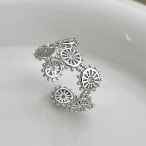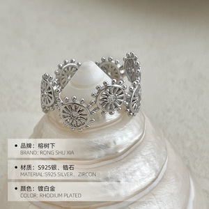 榕树下S925银复古蕾丝摩天轮戒指女高级感新款小众开口银饰指环