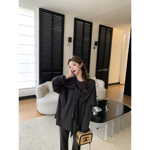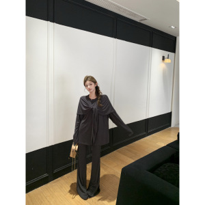 披肩假两件慵懒百搭恤女松弛感宽松休闲裤针织两件套套装女
