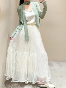 南油高端女装白色轻奢高级感法式纱裙半身裙高腰显瘦百搭A字裙子