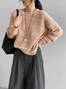 那末 显白蓝!韩系氛围感镂空圆领毛衣女慵懒宽松百搭针织衫Y1293
