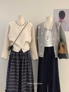 苏珊 韩系温柔风时尚圆领甜美蝴蝶结设计感针织衫显瘦毛衣26981