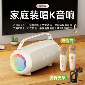 奶油白+双话筒+骑行支架【炫酷灯光+双喇叭高音质】