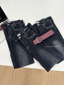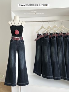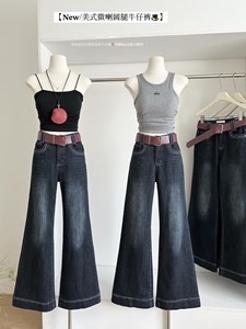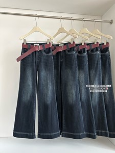 韩版复古阔腿微喇叭牛仔裤中高腰时尚显瘦辣妹马蹄拖地长裤