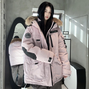 派克羽绒服工装90绒白鸭绒女冬季加厚情侣装服外套防寒毛领百搭