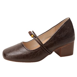 法式复古浅口单鞋女2025新款方头配裙子百搭内增高粗跟玛丽珍鞋33