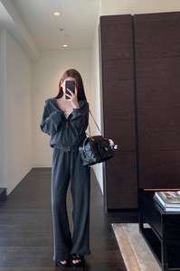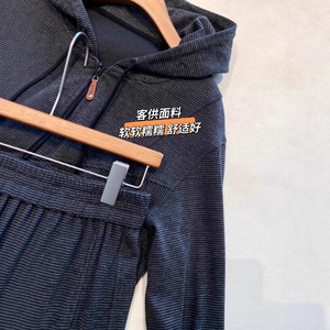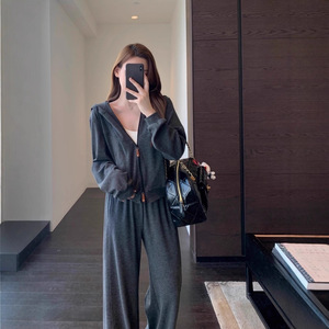 慵懒松弛感显瘦条纹连帽卫衣高腰阔腿裤女两件套秋冬新