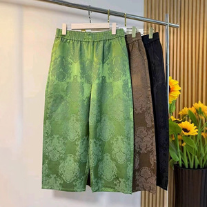 高端欧货早秋新款独特别致提花新中式国风宽松显瘦直筒阔腿裤女