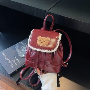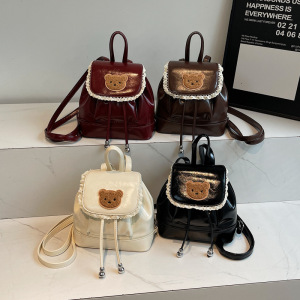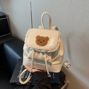 跨境复古可爱卡通小熊双肩包包女可爱时尚小众高级感少女蕾丝背包