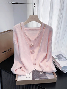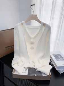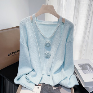 秋季套装毛衣韩系纯色甜美花朵针织开衫+立体花朵小吊带两件套女