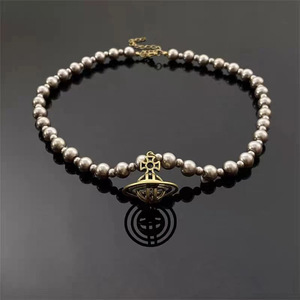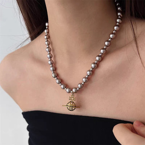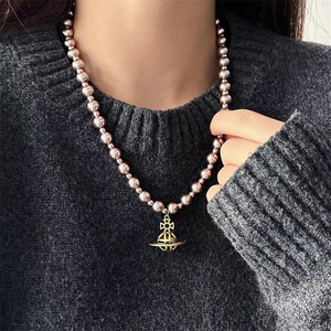 香槟金珍珠西太后土星项链女款立体镂空星球吊坠项链时尚百搭项饰