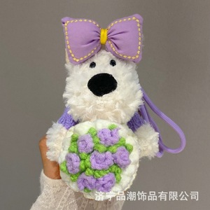 MR182紫蝴蝶结挎包兔西高地-送紫挂绳