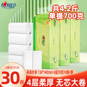 心相印茶语无芯卷纸700克四层卫生纸实惠家庭装整提厕纸手纸卷纸