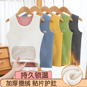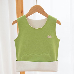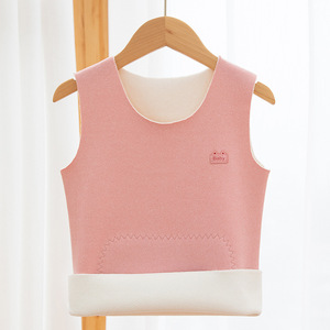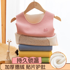 儿童护肚保暖加绒背心秋冬新款男女童糖果色贴片加绒加厚打底马甲
