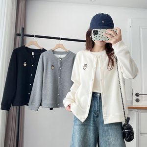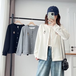 200斤胖妹妹秋季新款减龄刺绣卡通外套大码休闲夹克女装开衫8166