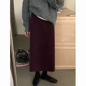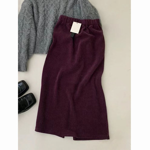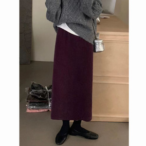 巨好搭!松紧高腰灯芯绒半身裙女秋季新款chic开叉包臀气质长裙子
