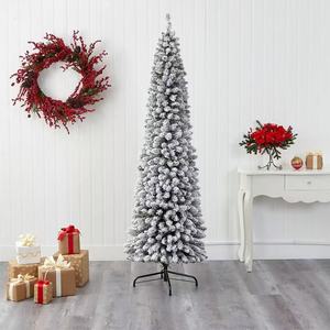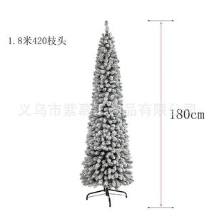跨境热卖圣诞节植绒树铅笔树1.2米-2.1米白色落雪加密圣诞树装饰
