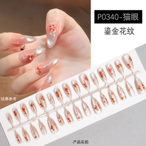 珠光猫眼简约花花爆闪穿戴甲秋冬爆款氛围感美甲贴片鎏金点钻ins