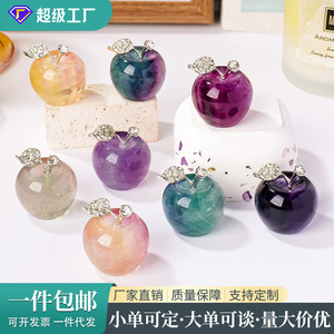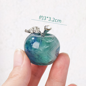 天然水晶苹果雕刻件彩萤跨境圣诞节平安果家居装水晶饰工艺品摆件