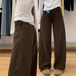 美式复古棕色弯刀牛仔裤女2025秋季新款梨型身材直筒巨显瘦阔腿裤