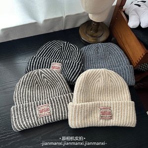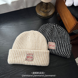 韩系ins风简约时尚百搭字母贴布毛绒帽休闲基础包头护耳保暖冷帽