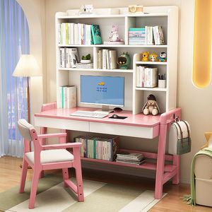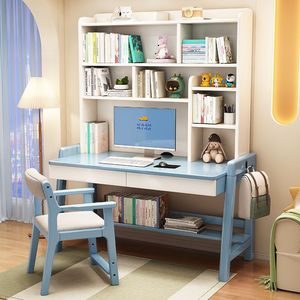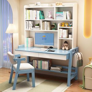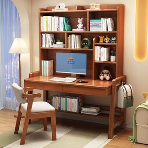 实木书桌书架可升降一体式儿童学习桌卧室简约家用中小学生写字桌