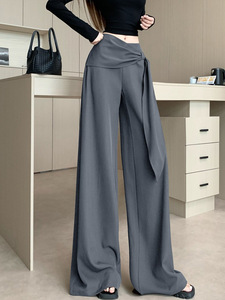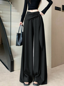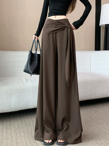 咖色阔腿裤女秋季设计感高腰显瘦2025垂感弯腿直筒休闲裤女A7229