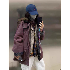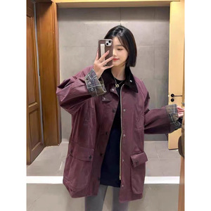 复古灯芯绒领夹克风衣 无蜡夹克 紫色工装外套