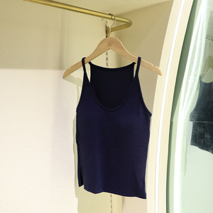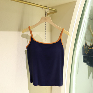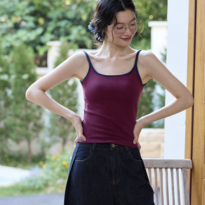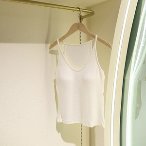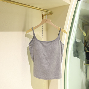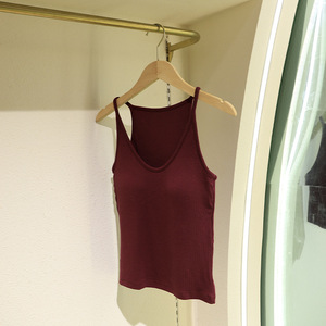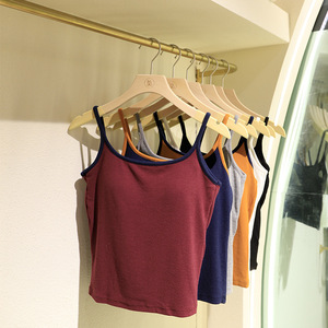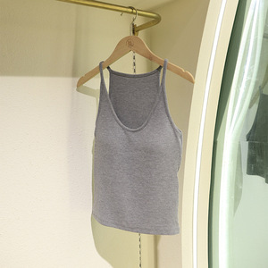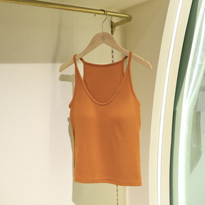 2025早秋极简百搭螺纹吊带背心圆领大露背带胸垫女内搭可外穿打底