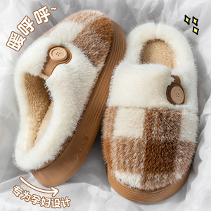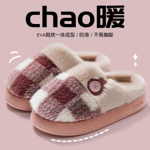 踩屎感棉拖鞋女士秋冬季2025新款室内家居防滑厚底保暖毛绒月子鞋