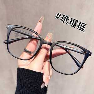超轻黑框眼镜女近视可配ins高级感复古大框素颜眼镜方圆脸大显瘦