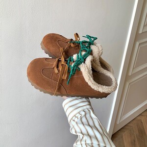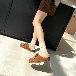 【芈祐版】雪顶摩卡○鸳鸯鞋带保暖毛毛鞋女2025冬季新款休闲拖鞋