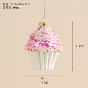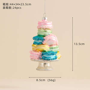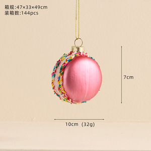 新款异形玻璃圣诞球圣诞树挂件彩色马卡龙蛋糕彩绘球圣诞节装饰品