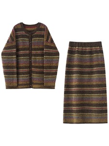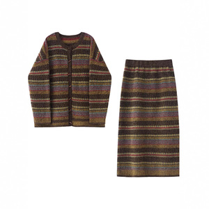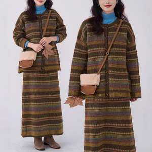 2025韩系复古民族风彩色针织毛衣半身裙套装女秋冬