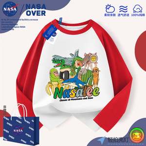 NASA男童山海经鲨鱼卡通纯棉插肩长袖t恤春秋季新款炫酷百搭秋装