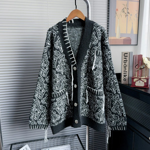 重工小香风复古慵懒风设计感针织开衫2025秋冬新款流苏毛衣女外套