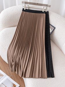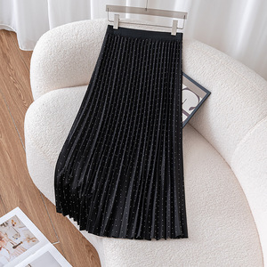 烫钻百褶裙半身裙女秋冬2025新款长裙松紧高腰中长款风琴裙a字裙