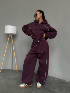 弯刀阔腿裤子女2025新款运动春秋季慵懒bf风直筒休闲卫裤套装批发