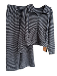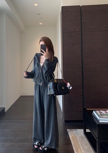 慵懒松弛感显瘦条纹连帽卫衣高腰阔腿裤女两件套25秋冬新G090906