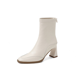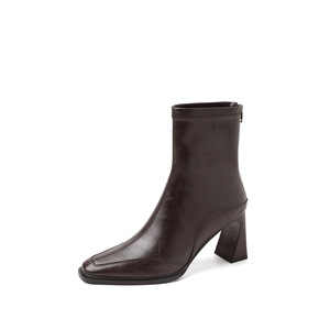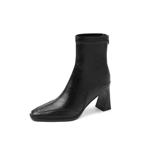 女神范气质小方头瘦瘦靴2025秋冬通勤粗高跟纯色弹力短靴女41大码