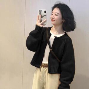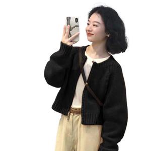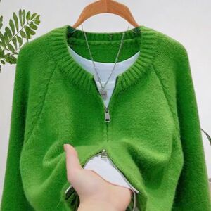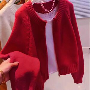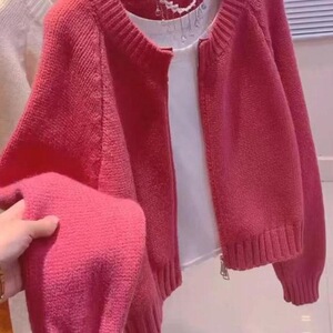 2025年拉链开衫漂亮毛衣新款好看树莓红色宽松拉链针织开衫女外套