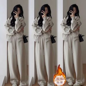 加绒加厚运动套装女冬季韩版宽松显瘦时尚卫衣休闲两件套跑步服潮